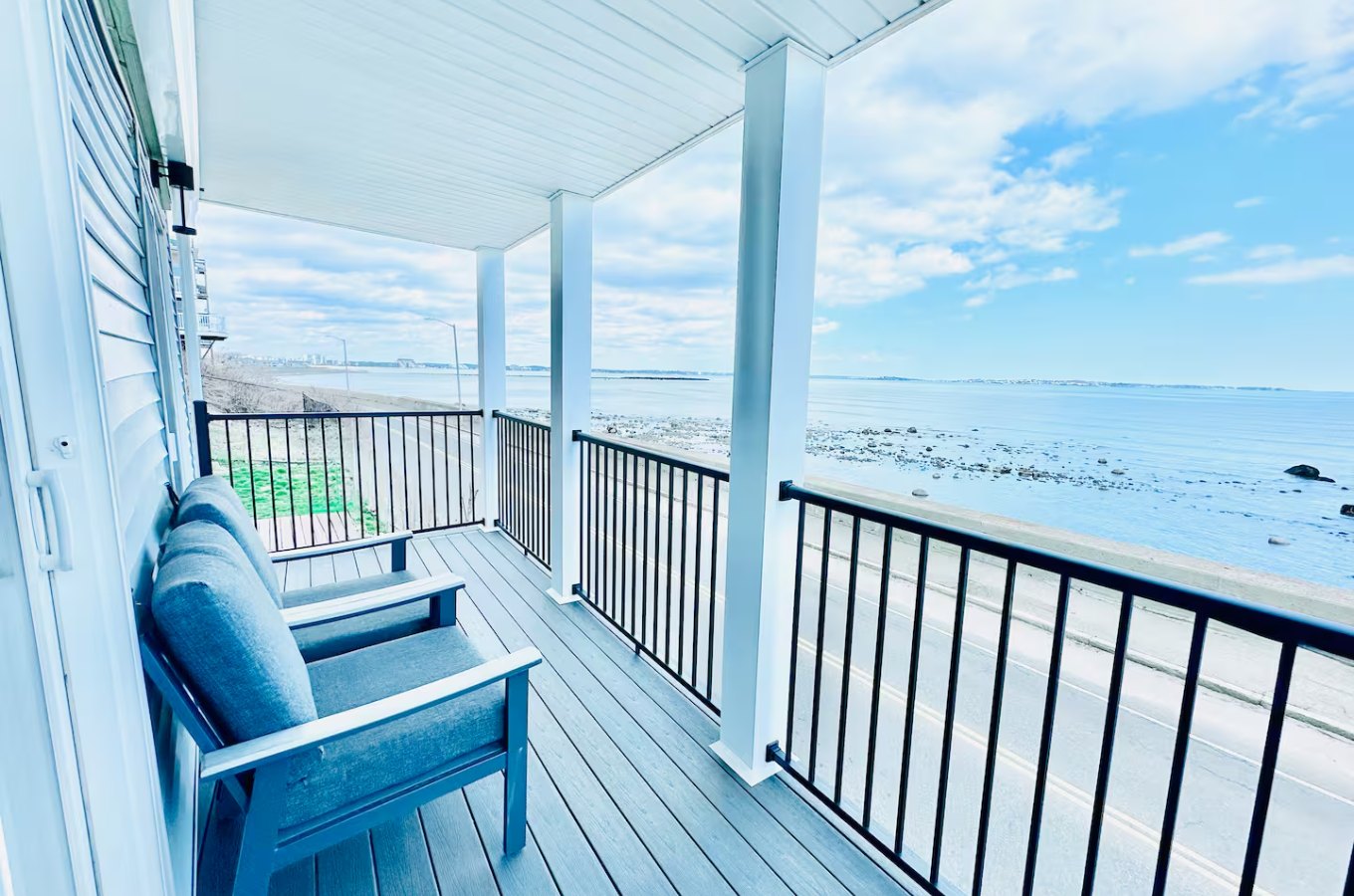 In Rockport, you’ll find this two-bedroom apartment with a sweeping sea view. Kayak in the harbor, sample the ultra-fresh seafood, then come back and lounge on your roof deck and take in the beautiful vista.