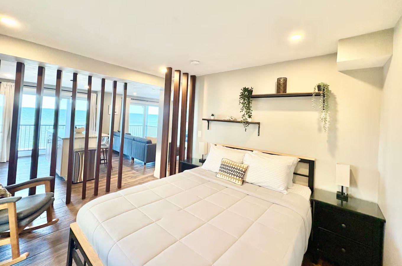 This tastefully designed penthouse has breathtaking views of the ocean. Perfect for couples, this studio space has luxe touches like a jetted tub, quartzite kitchen, and cozy space.