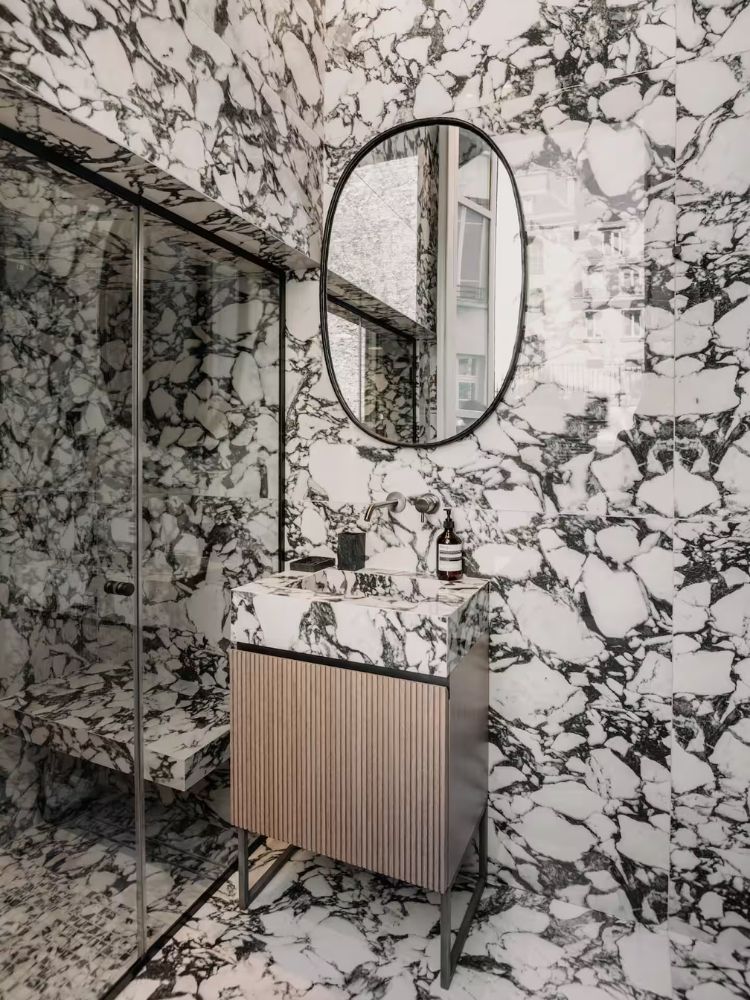 This light-filled Paris hideaway feels like stepping into a design magazine. Think warm wood paneling, gold accents, a king bed, and a bathroom completely wrapped in marble.